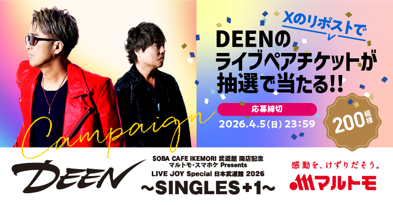 また、マルトモ公式Xでは日本武道館公演ペアチケットが200組に当たるキャンペーンを本日12時より開始します。キャンペーン詳細はマルトモ公式Xをご確認ください。