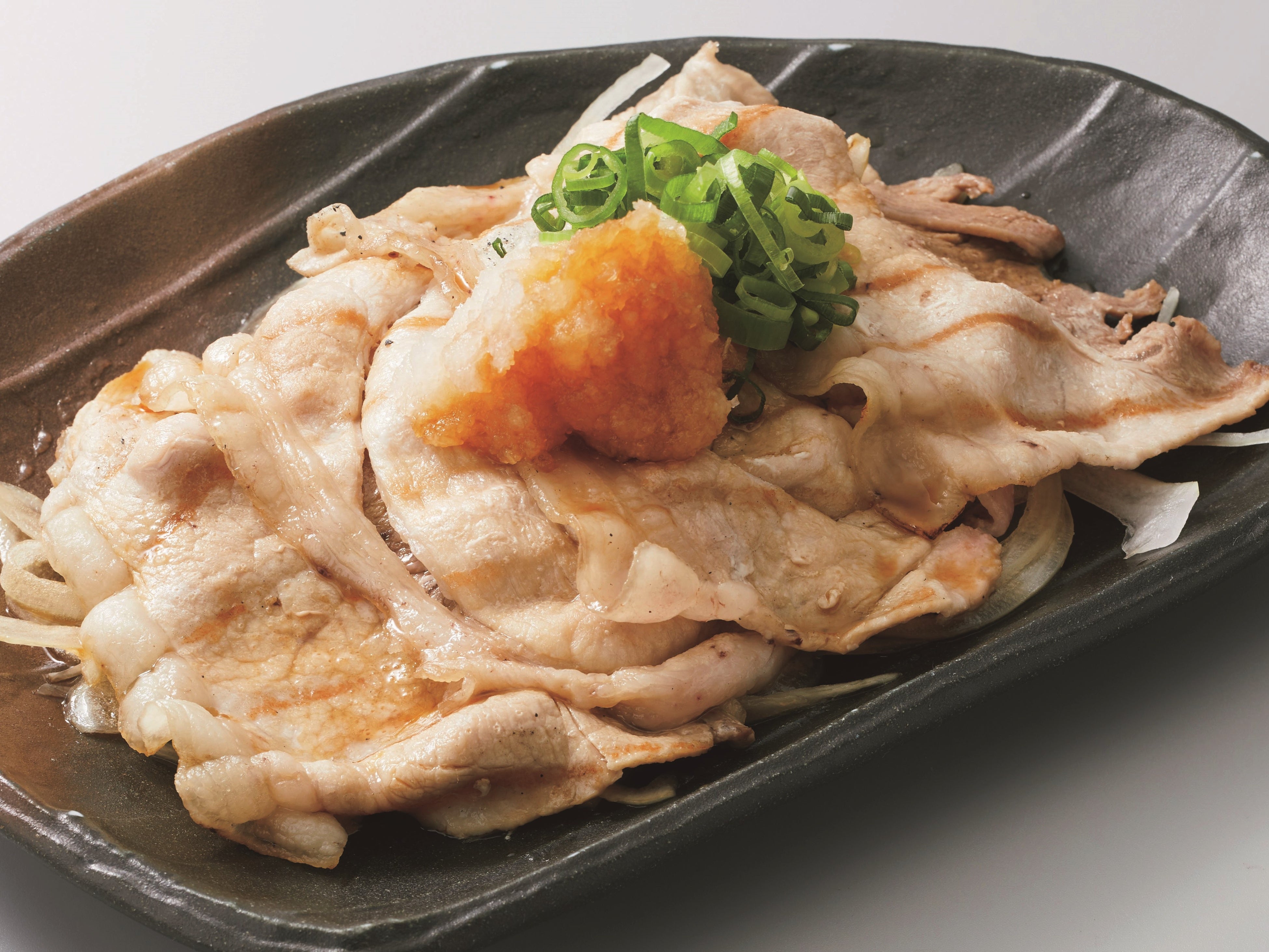 三田ポークをさっと焼き上げ、やわらかな肉質と脂の甘みを引き出し、さっぱりとしたポン酢で仕上げました。前菜にもメインにもぴったりの一皿です。