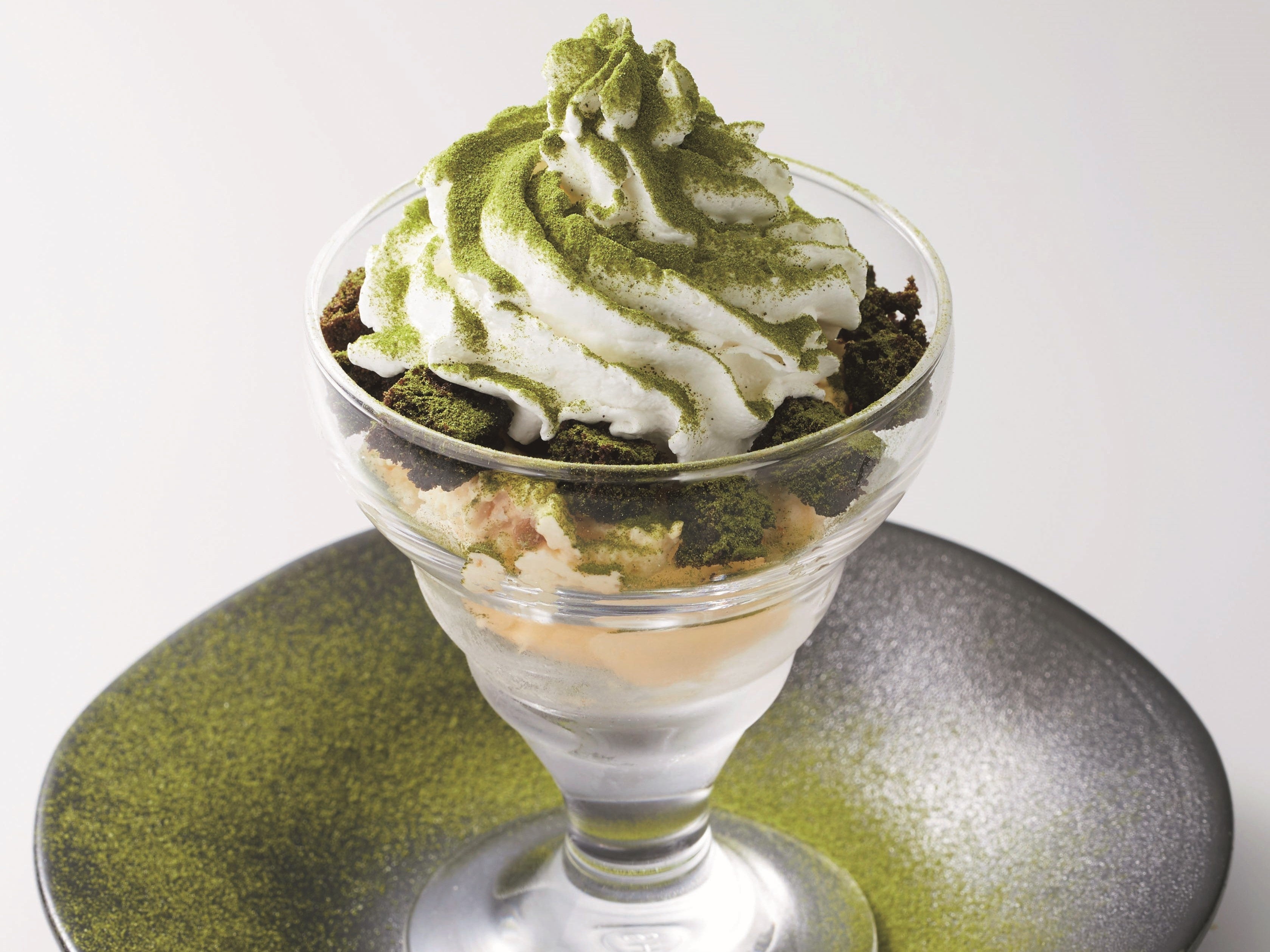 抹茶の香りが広がる、ほろ苦さと甘さが重なる贅沢パフェ。バニラアイスやチョコマフィンを重ね、食べ進めるごとに味わいが変化します。食後にぴったりの、満足感ある一品です。