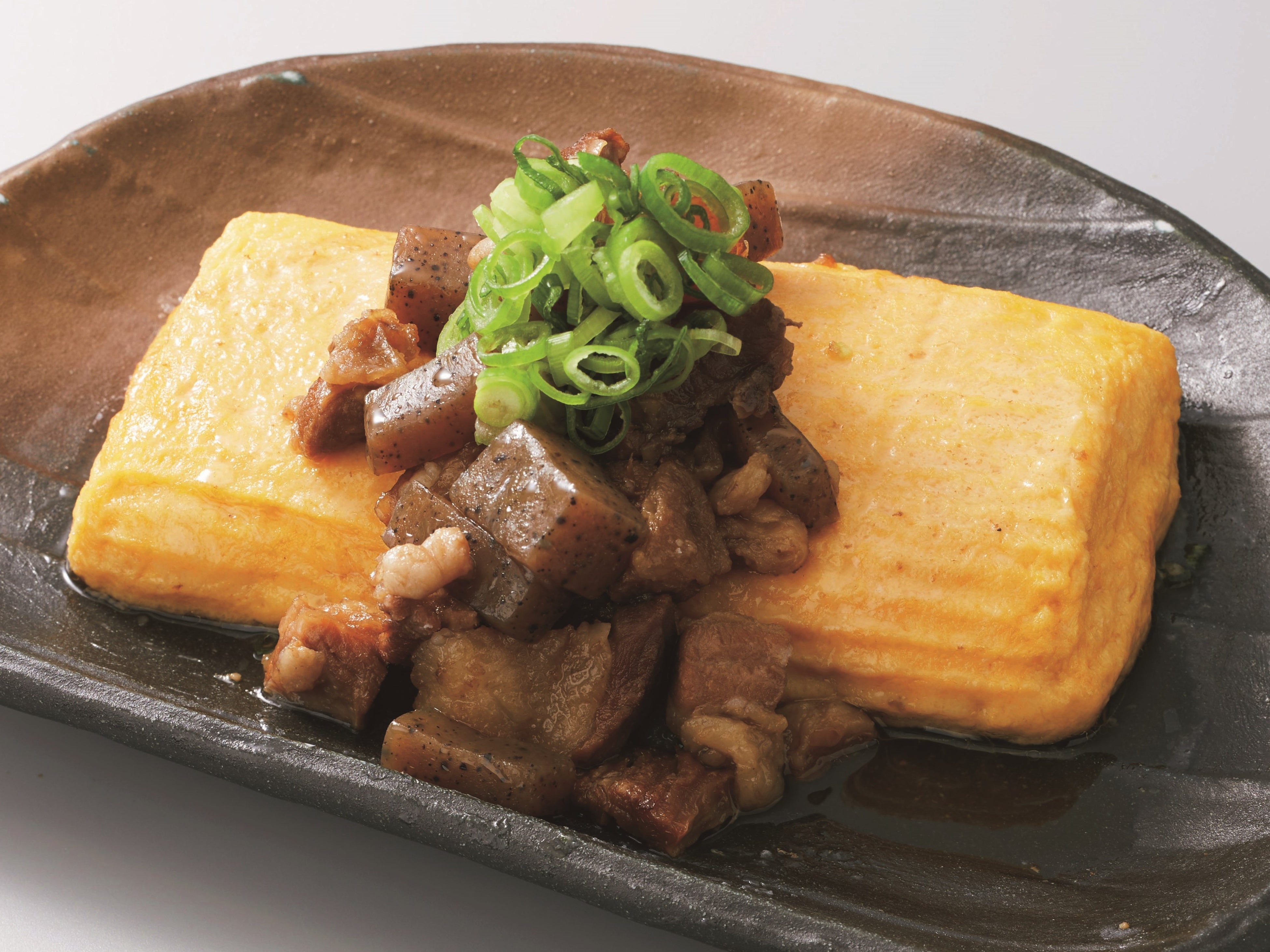 ふんわり巻き上げただしまきに、旨みたっぷりの牛すじぼっかけを合わせた贅沢な一品。出汁のやさしい味わいと、甘辛く煮込んだ牛すじのコクが絶妙に絡み合います。