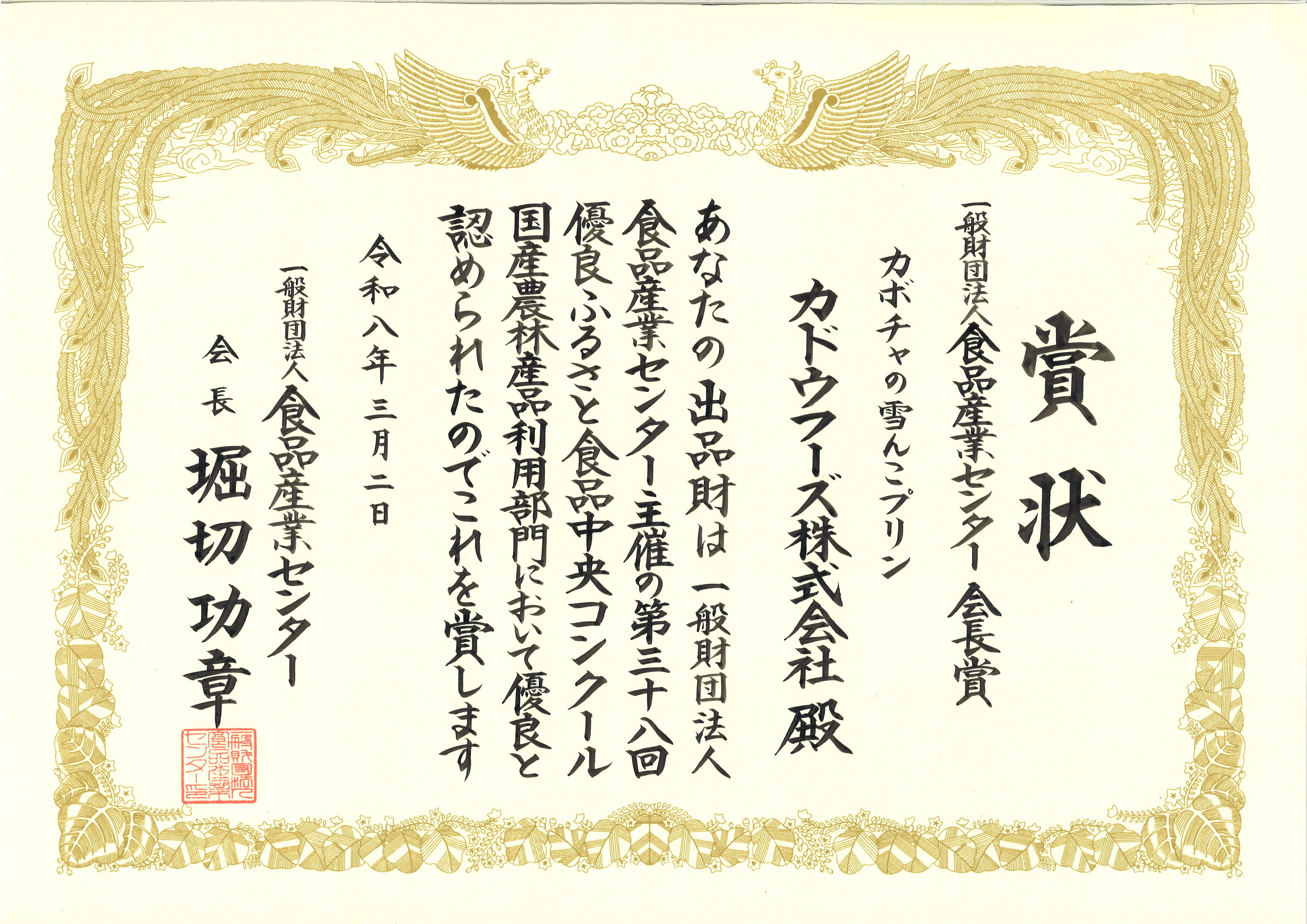 2026年 第38回優良ふるさと食品中央コンクール:(一財)食品産業センター会長賞受賞(全国3位相当)