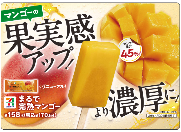 株式会社セブン‐イレブン・ジャパン(本社:東京都千代田区、代表取締役社長:阿久津 知洋)は、シリーズ累計販売数2億2,000万本(※1)を突破した「まるでシリーズ」から、「セブンプレミアム まるで完熟マンゴー」を、全国のセブン‐イレブン店舗にて4月7日(火)より順次発売いたします。
