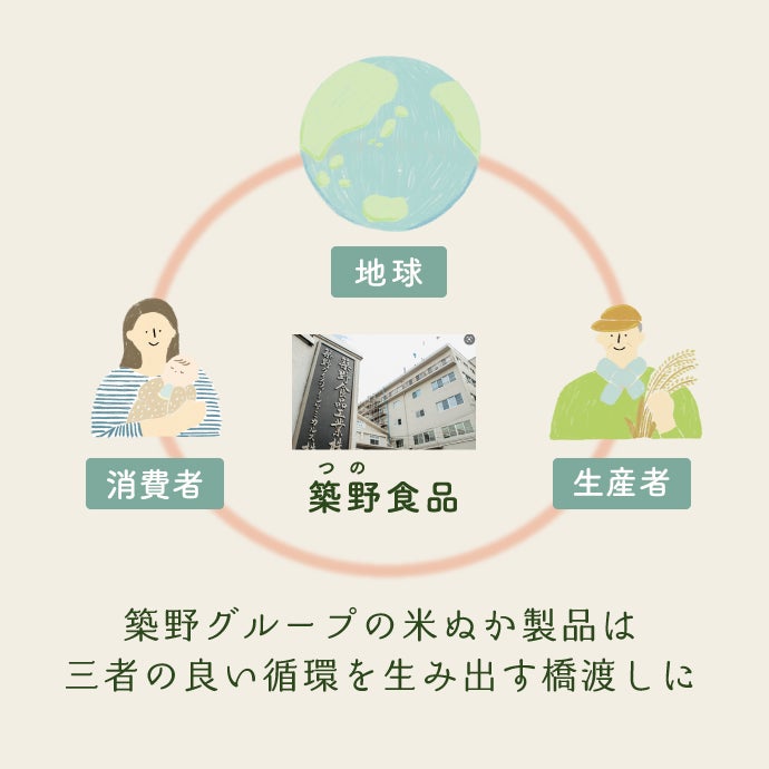当社は長年、こめ油の原料である米ぬかの成分に着目し、研究を進めてまいりました。精米時に発生する副産物である米ぬかの成分を抽出することで、こめ油だけでなく食品、化学、医療、化粧品等の幅広い分野への高度有効利用をし、米ぬかの100%活用をしています。今後も国内の米ぬかを活用することで地球・生産者・消費者の良い循環の実現を目指していきたいと考えています。