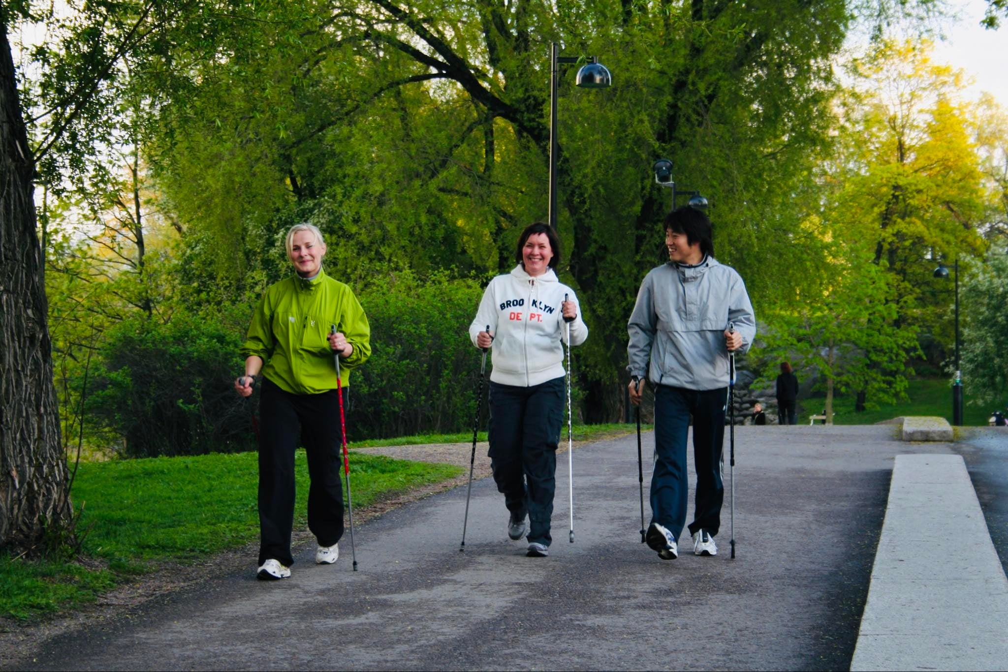 フィンランド発祥のエクササイズウォーキング。2本のポールを使って足腰の負担も減らしながらインストラクターと一緒に春香る立川の町並みを歩きます。