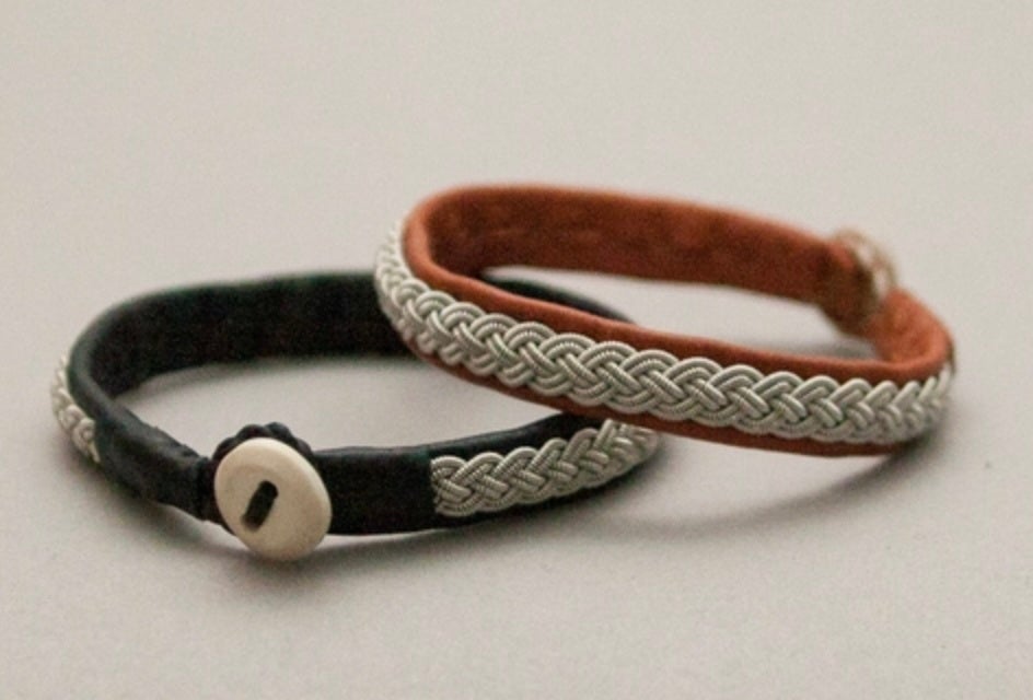 北方民族のサーミ族に伝わる、トナカイ革のブレスレット。ワークショップではキットを使い、ピューターのワイヤーを編んでトナカイ革に留め付けてブレスレットを作りましょう。シルバーが4%含まれているというピューターのワイヤーや、留め具のトナカイの角ボタンなどのディテールも本格的です。