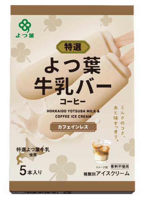 ミルクにこだわったアイスクリーム「よつ葉牛乳バー」シリーズに、ミルクと相性抜群の「コーヒー」フレーバーが新登場。カフェインレスのため、親子で安心してお召し上がりいただけるマルチパックのアイスクリームです。