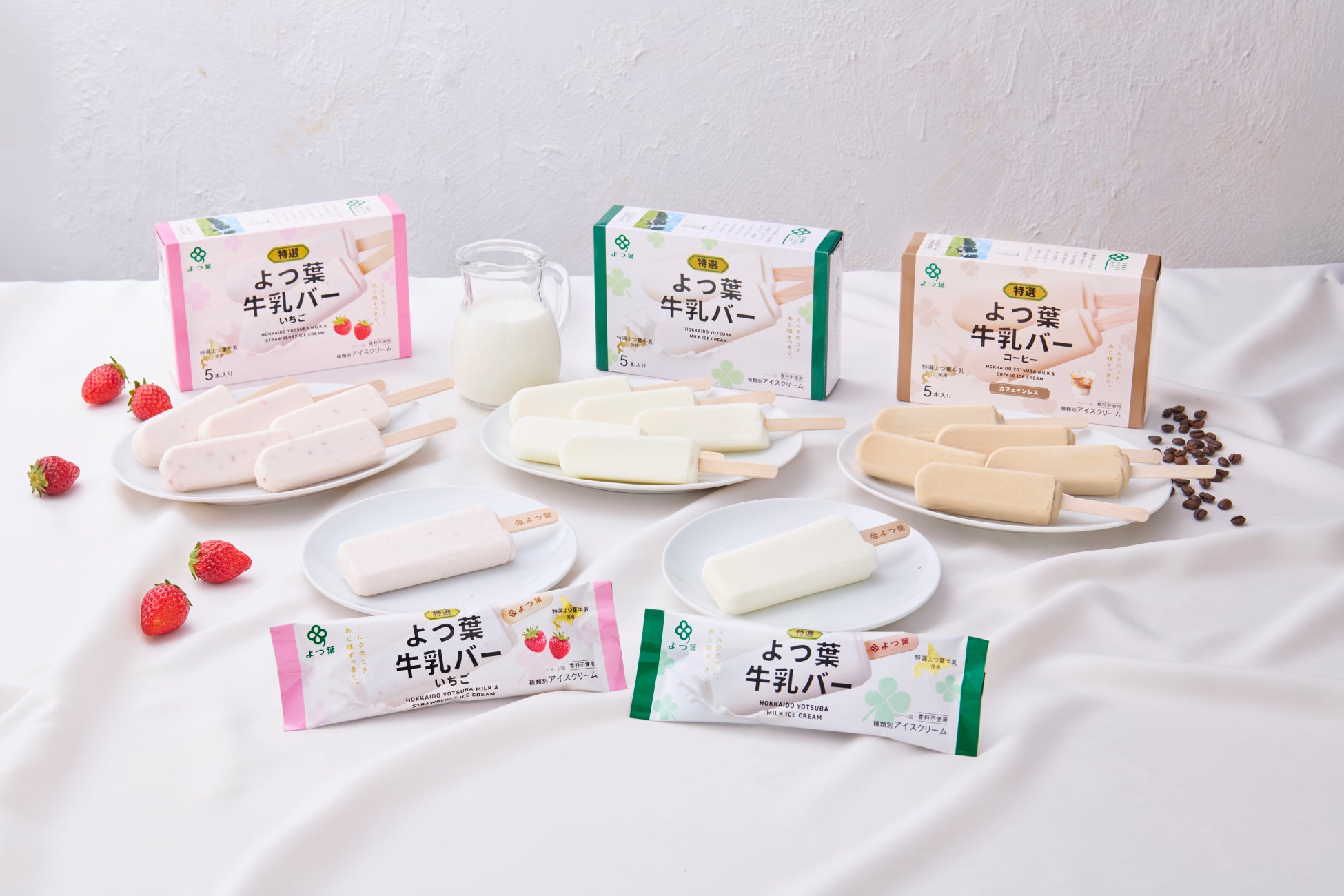 「よつ葉牛乳バー」シリーズのデザインをリニューアル。「特選よつ葉牛乳を使用したアイスクリーム」であることが分かりやすいデザインへ刷新し、店頭での存在感をさらに高めます。