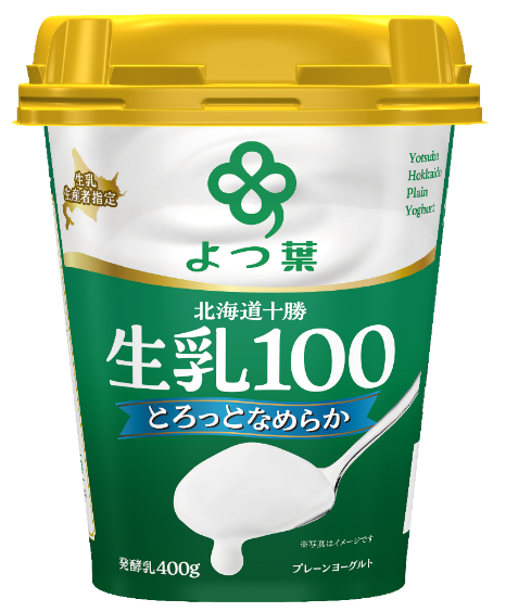 北海道十勝産の生乳を100%使用した「北海道十勝生乳100ヨーグルト」シリーズのデザインを一新しました。パッケージの色など、皆さまに覚えていただいている点は現行品を踏襲しつつ、シリーズ最大の特長である「北海道十勝生乳100」をより目立つ表現にしました。また“よつ葉”ロゴを拡大し、“よつ葉ブランド”をより分かりやすくお伝えします。