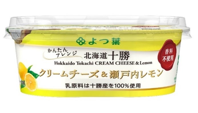 原材料の生乳、チーズは北海道十勝産100%にこだわった「北海道十勝」シリーズに、「クリームチーズ&瀬戸内レモン」フレーバーが新登場。爽やかな味わいで、様々なアレンジレシピにも手軽にお使いいただける商品です。