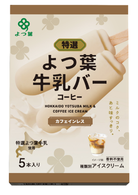 ミルクにこだわったアイスクリーム「よつ葉牛乳バー」シリーズに、ミルクと相性抜群の「コーヒー」フレーバーが新登場。カフェインレスのため、親子で安心してお召し上がりいただけるマルチパックのアイスクリームです。