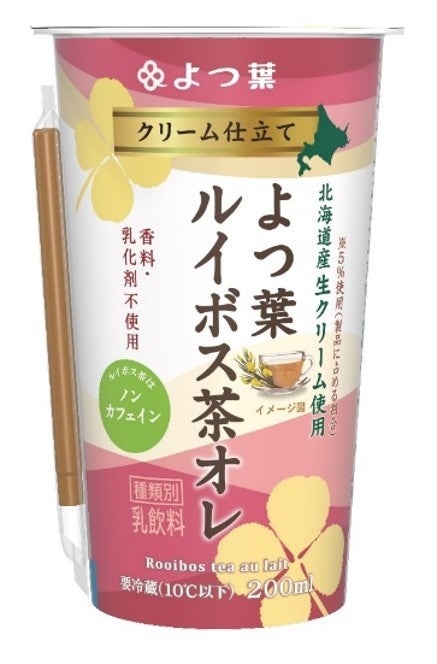 北海道産のミルクのおいしさを最大限に活かした「よつ葉オレ」シリーズに、近年人気の「ルイボス茶」フレーバーが期間限定で新登場。ルイボス茶とミルクのバランスにこだわり抜き、よつ葉らしいやさしい味わいを追求しました。