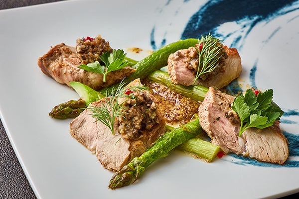 5月「ヤングコーンの炭火焼きオリーブ豚バラ肉の新生姜巻き」