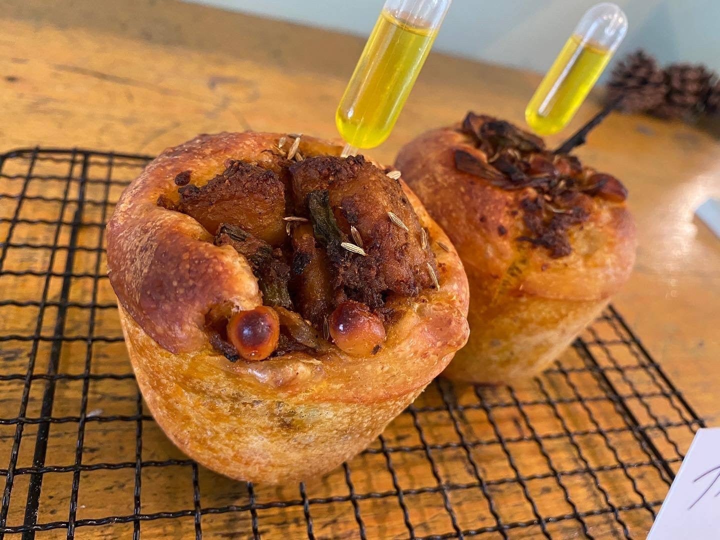 榎友寿プロデュースの「パンヲユメミル」が高槻阪急スクエアに初登場。「丹青」(船井高志シェフ)「パン工房フル二エ」(坂田竜一シェフ)「メゾンムラタ」(村田圭吾シェフ)とのコラボパンを実演で展開。