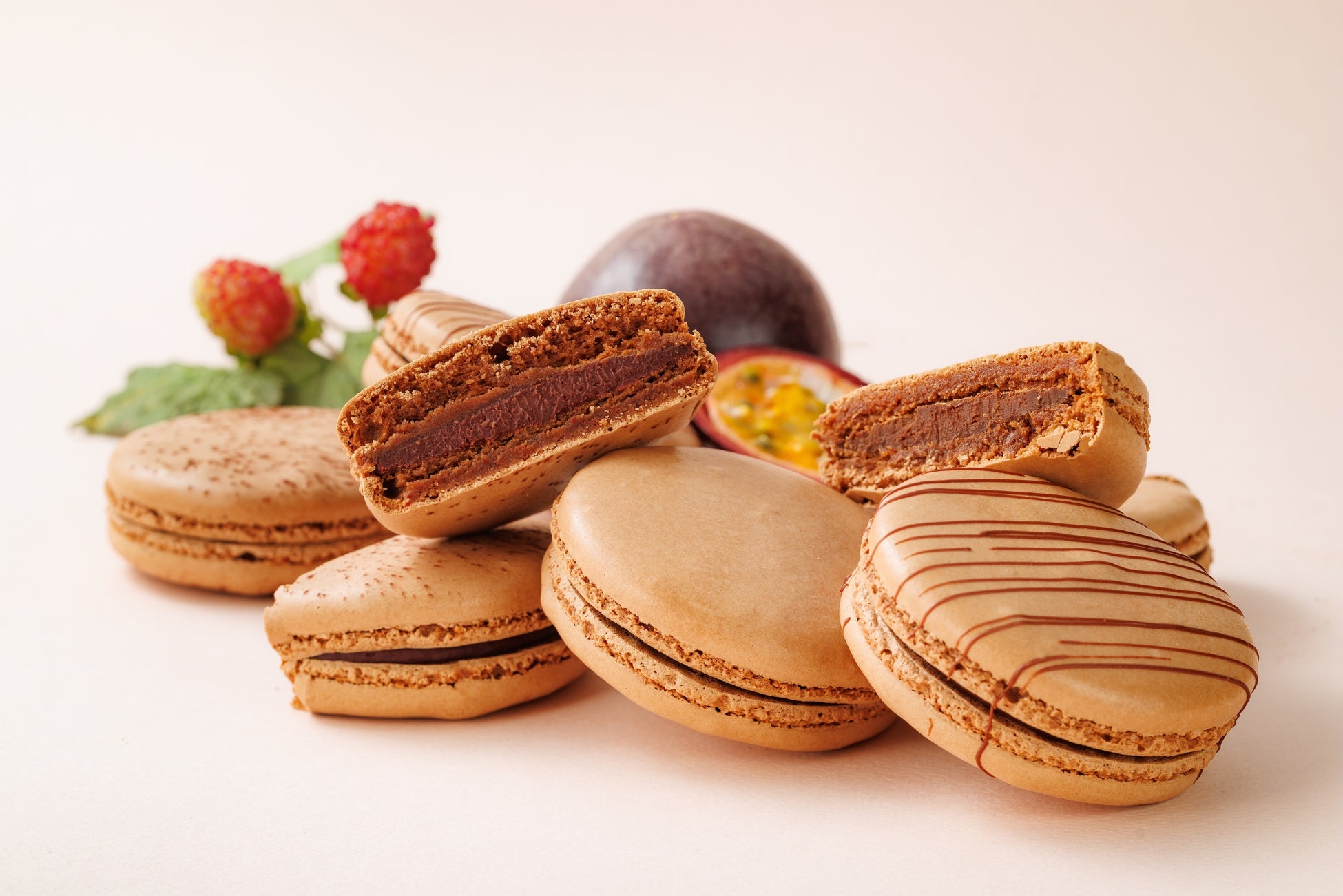 今年の春夏は、フランボワーズ、パッションフルーツ、そして新たに加わるタイ産カカオ75%ショコラの3種類のガナッシュをサンド。甘酸っぱい果実の風味やカカオの奥行きある味わいが広がるこの季節にぴったりのフルーティーなマカロンです。
