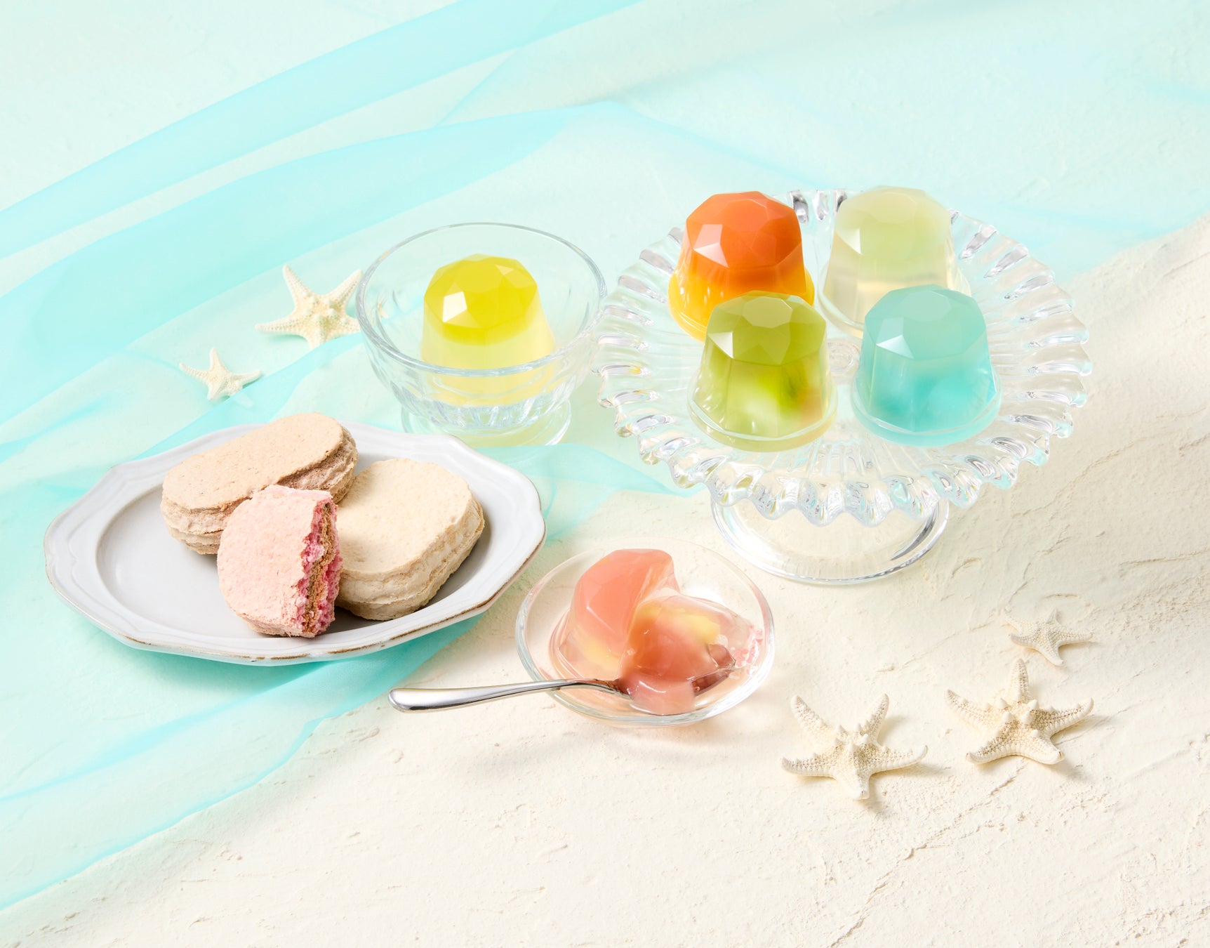 ジュレの爽やかな喉ごしと、アーモンド風味のサクふわ食感のコントラストが、夏のティータイムを華やかに彩ります。
