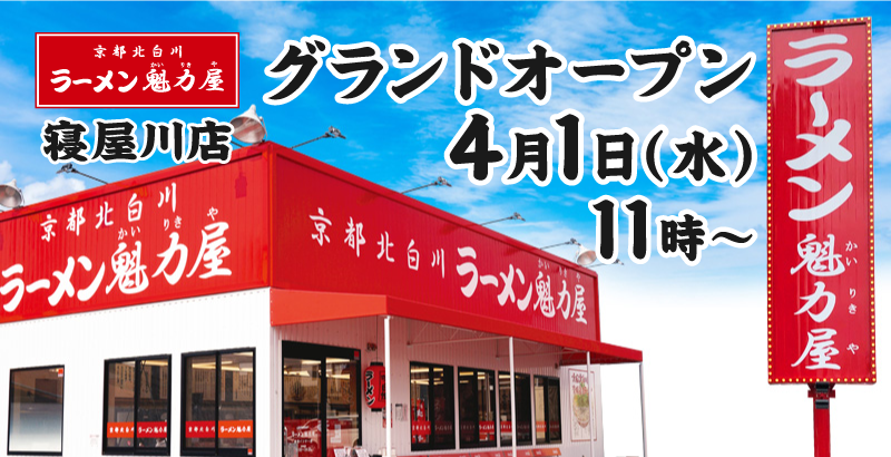 京都北白川 ラーメン魁力屋「寝屋川店」オープン記念価格での販売決定!