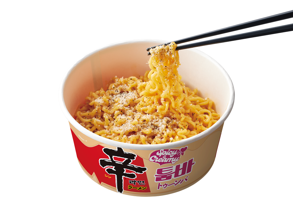 辛ラーメンファンの声を元に商品化した、SNSでも話題の濃厚ピリ辛クリームパスタ風辛ラーメン。この機会にぜひ!
