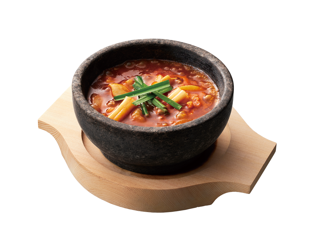 じゃがいもやたまねぎの旨味と特製ヤンニョムが効いたスープで煮込みました。少し時間をおいてとろみが出てきたら食べ頃です。