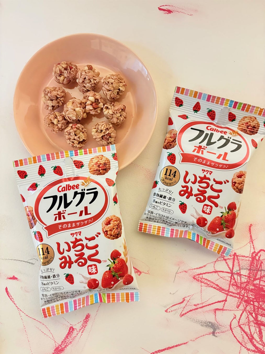 カルビー株式会社(本社:東京都千代田区、代表取締役社長兼CEO:江原 信)は、シリアルブランド売上No.1(※1)の「フルグラ®」がひとくちサイズにまるくなった「フルグラ®ボール」と、サクマ製菓株式会社(本社:東京都目黒区、代表取締役社長:山田 流石、以下「サクマ製菓」)が展開するキャンディ「いちごみるく」が初めてコラボレーションした新商品『フルグラ®ボール いちごみるく味』を2026年4月6日(月)から全国のコンビニエンスストアとカルビー直営店「カルビープラス」先行で期間限定発売します。コンビニエンスストア以外の店舗では2026年4月13日(月)から期間限定発売します(2026年9月上旬終売予定)。