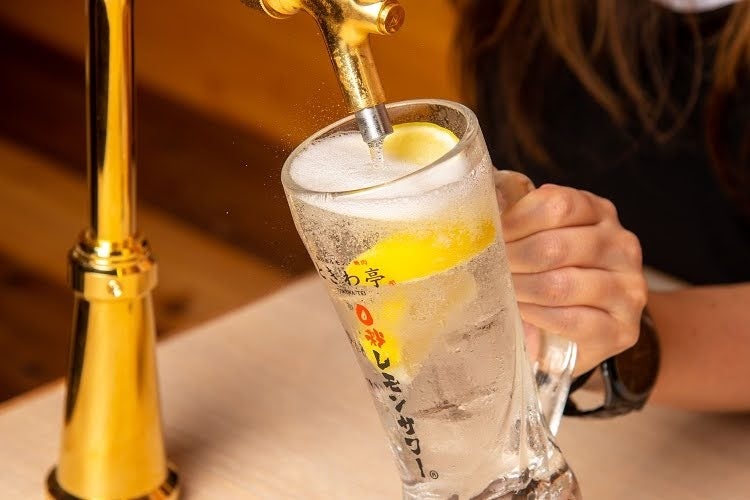 各テーブルに設置されたレモンサワーサーバーから好きなだけ注ぎ放題、飲み放題の待ち時間 0 秒のストレスフリーな飲み放題サービスです。