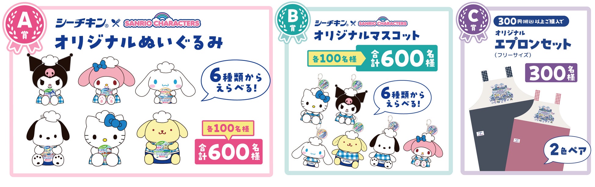 C賞:シーチキン×サンリオキャラクターズ オリジナルエプロン2枚セット (300名)