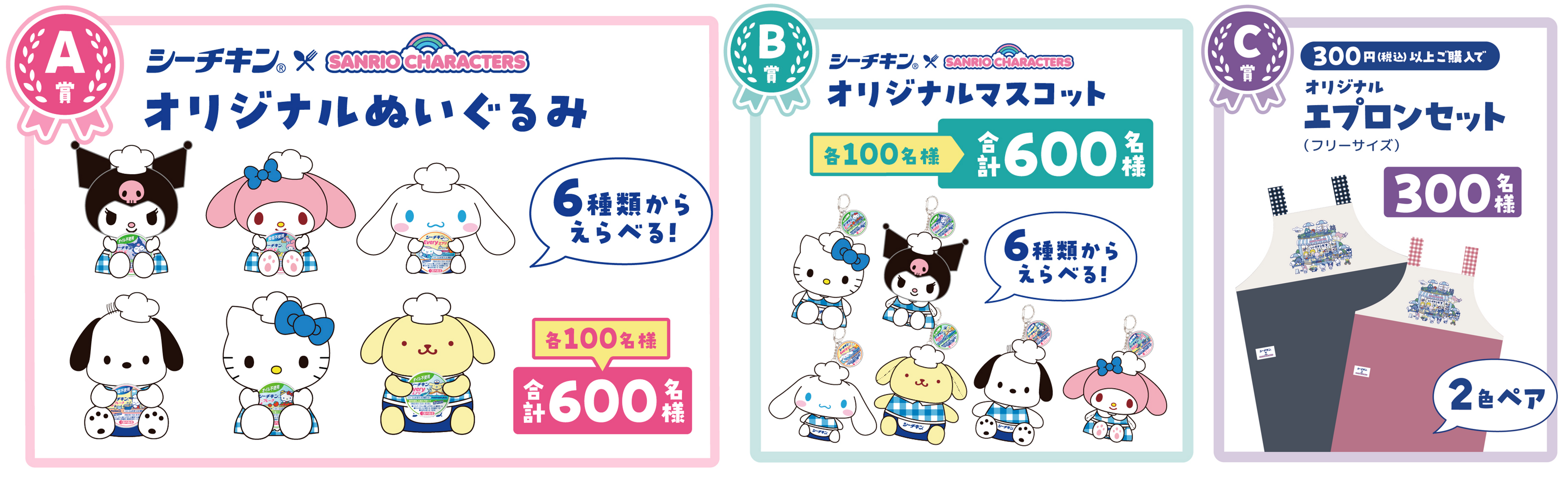 C賞:シーチキン×サンリオキャラクターズ オリジナルエプロン2枚セット (300名)
