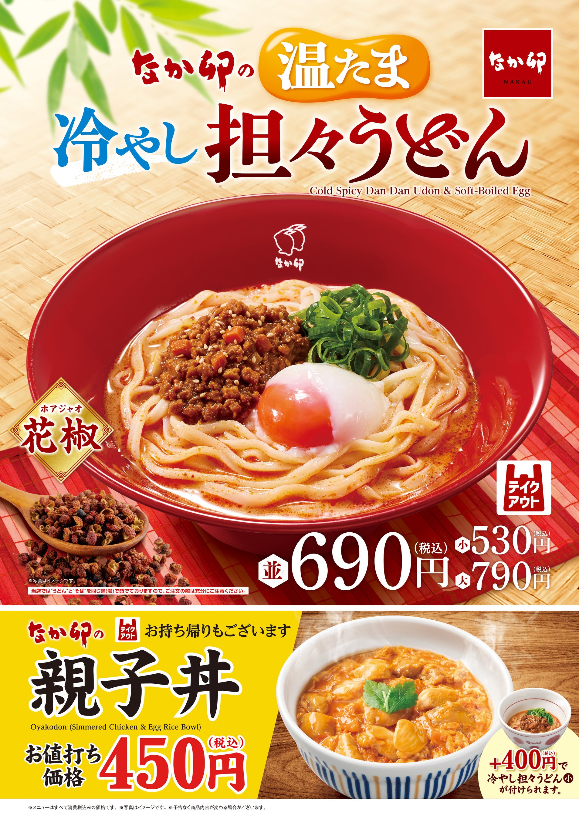 同時に、“胡麻担々だれ”の味わいをシンプルにご堪能いただける「冷やし担々うどん」や、二八そばを使用した「温たま冷やし担々そば」「冷やし担々そば」も販売します。小サイズもご用意しているため、親子丼などとのセットでもお気軽にご注文いただけます。