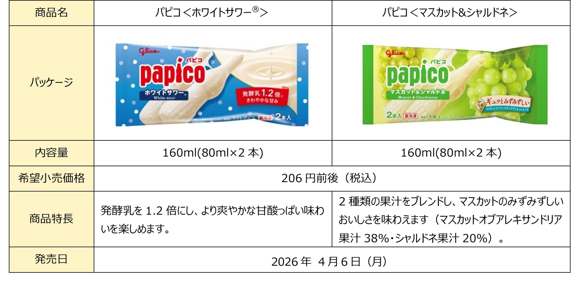 今回のリニューアルでは、長く多くのお客さまに支持いただいている「パピコ<ホワイトサワー®>」と「パピコ<マスカットオブアレキサンドリア>」という人気フレーバーの魅力を、さらにしっかりと感じていただけるよう、素材選定や配合を見直し、発酵乳や果汁など素材本来の味わいを高めました。忙しい毎日の中で「パピコ」を手に取っていただくひとときが、気持ちを切り替えて前向きになれるリフレッシュにお役に立てるとうれしいです。