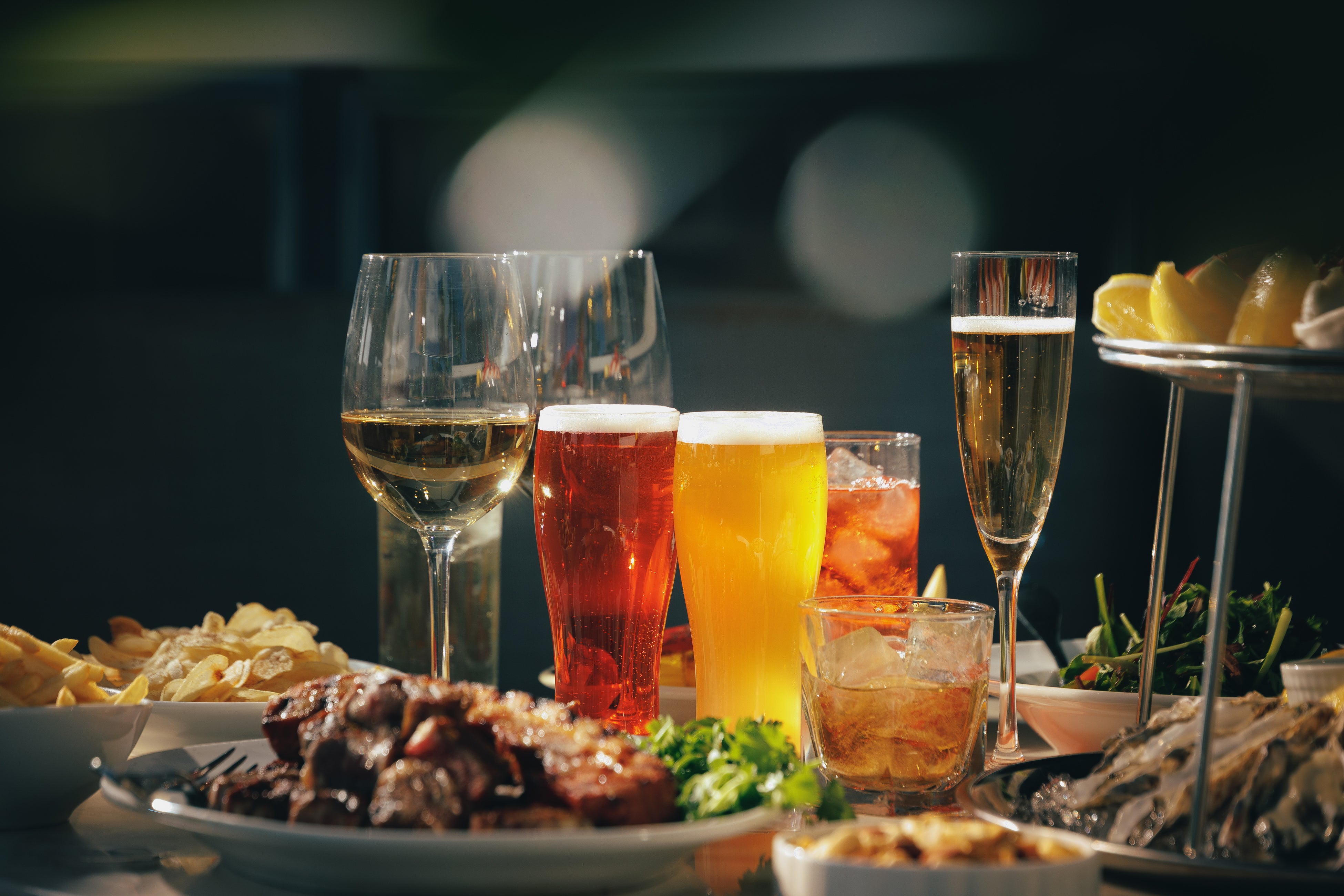 – ドリンク(通常フリーフロー)、ビール、スパークリングワイン、赤・白ワイン、ハイボール、カクテル、ソフトドリンク ほか