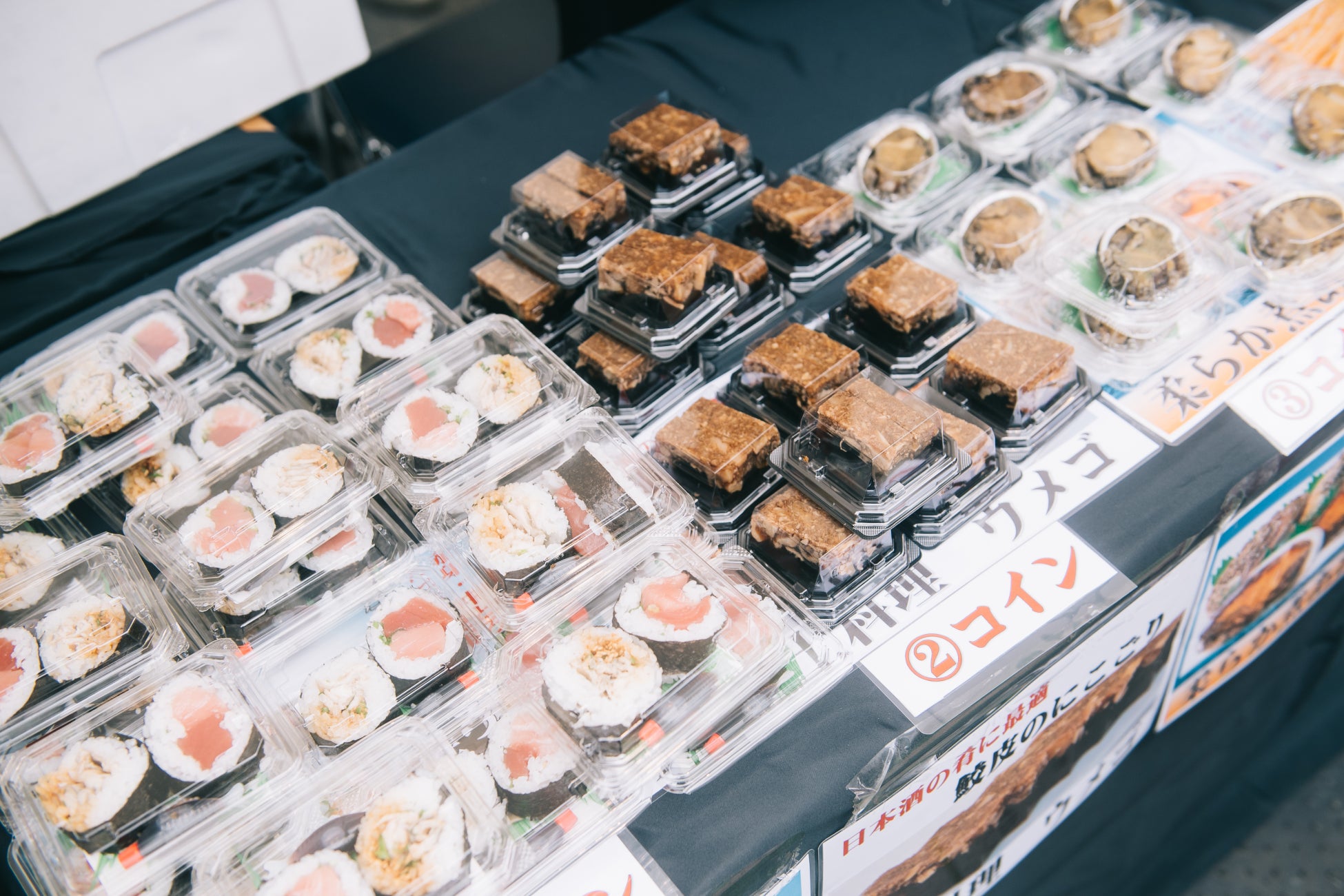フードブースでは、「飯田商店」のアワビや穴子、「貝新物産」の桑名名物焼き蛤、「eight foods」の串焼き、「諭吉のから揚げ」、「ナカタノサカナ」の海鮮焼きそばなど、日本酒とのペアリングにぴったりなおつまみが提供されました。