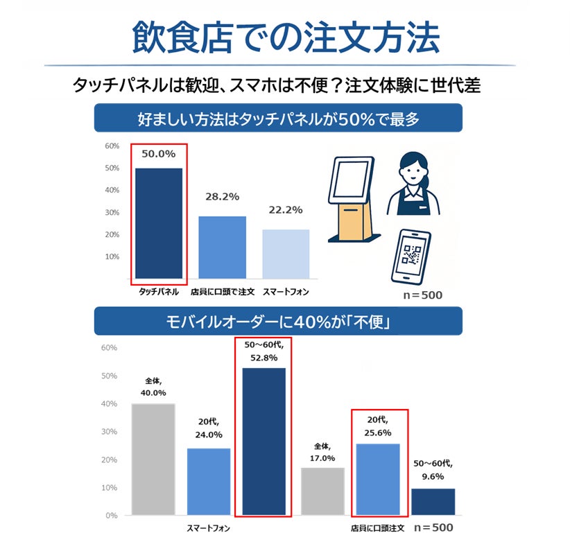 好ましい注文方法はタッチパネルが50.0%で最多。若年層ほど“デジタル注文”に適応