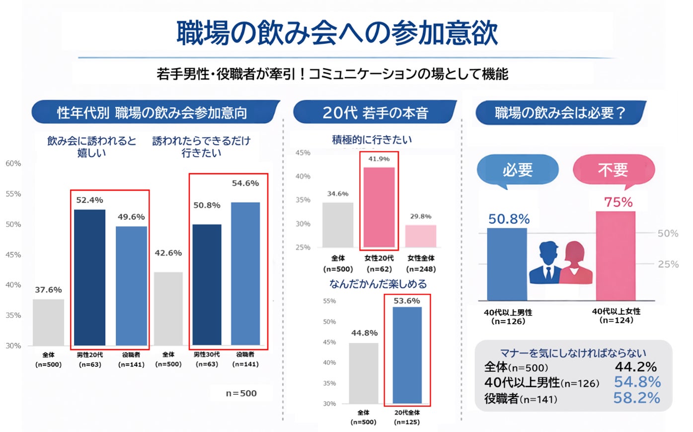 職場の飲み会は若手男性・役職者が牽引!コミュニケーションの場として機能