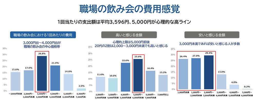 職場の飲み会の平均金額は3,600円。若年層ほど金額感度が高い傾向に