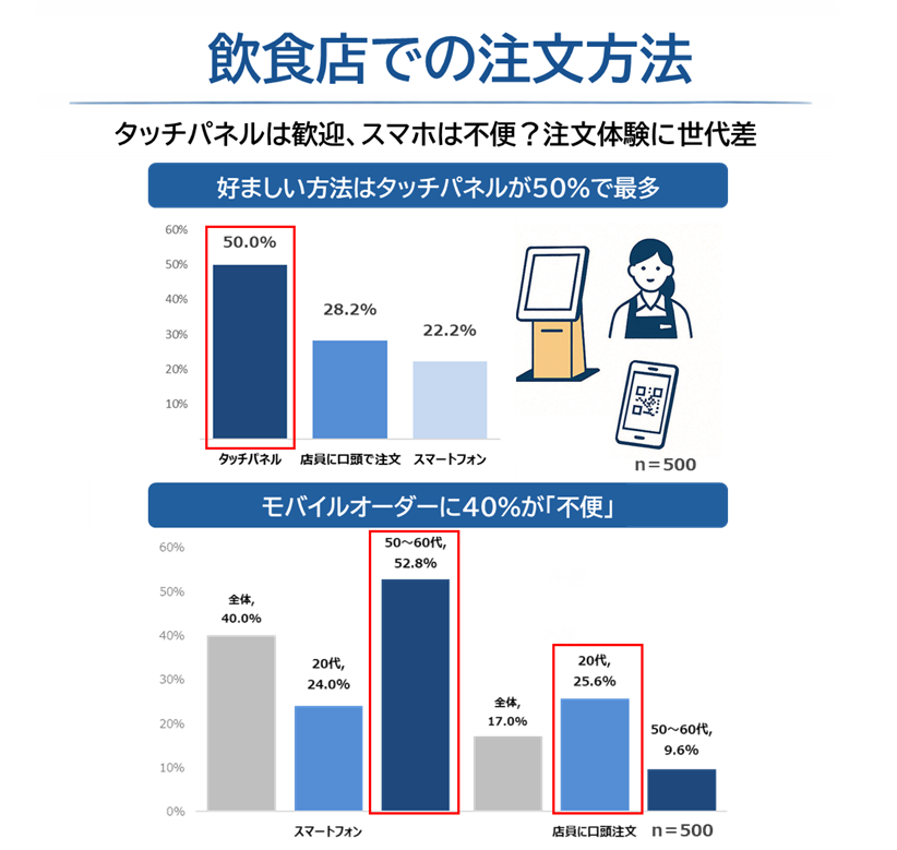 好ましい注文方法はタッチパネルが50.0%で最多。若年層ほど“デジタル注文”に適応