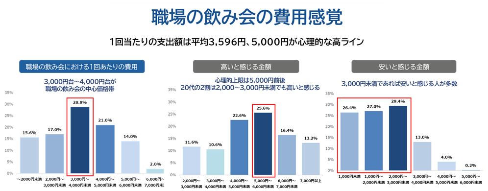 職場の飲み会の平均金額は3,600円。若年層ほど金額感度が高い傾向に