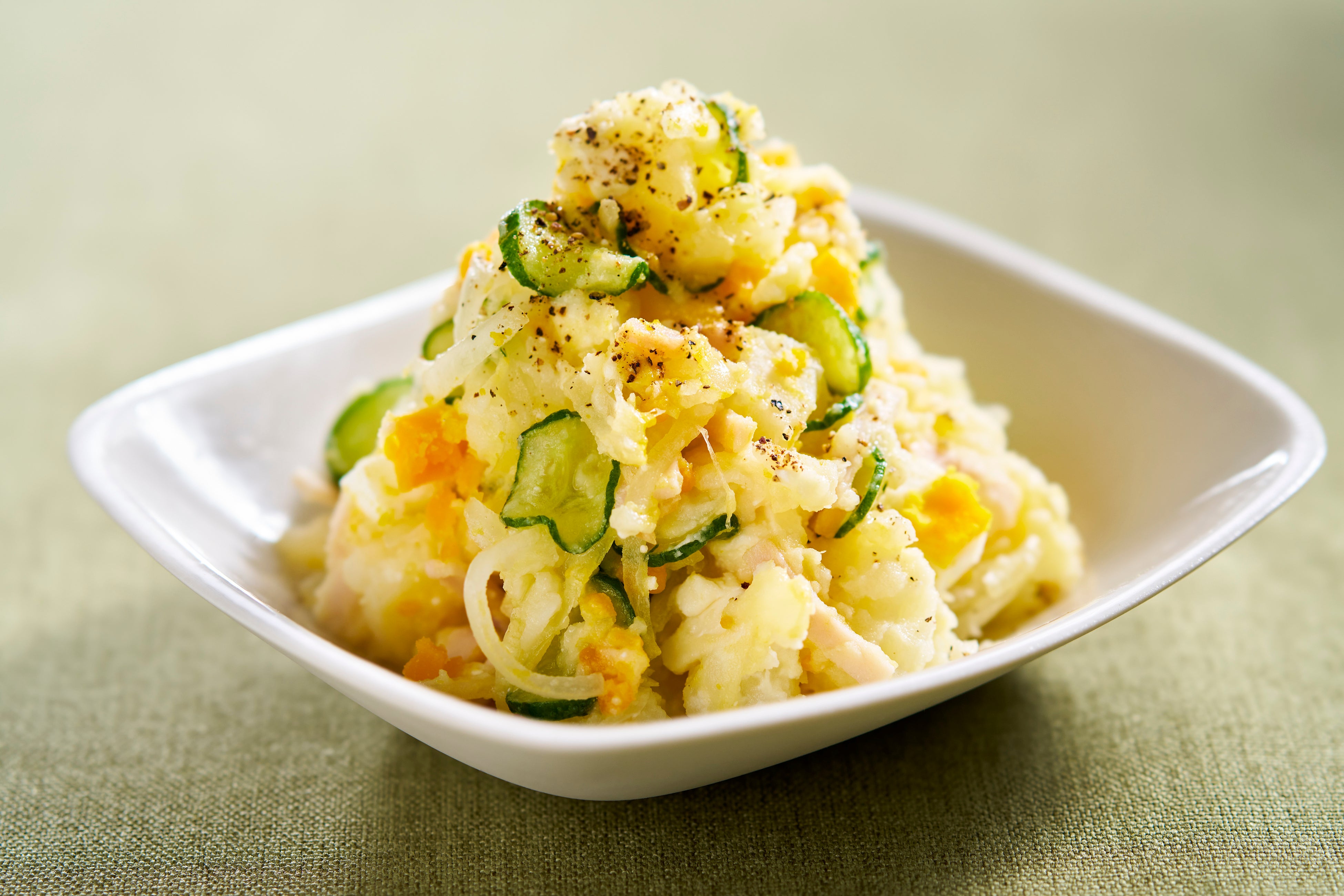 「減塩液体塩こうじ」のパッケージカラーと同じ緑色のエプロン姿の和田明日香さん。減塩タイプでもしっかり美味しい、和田さん考案の3つのメニューが登場します。