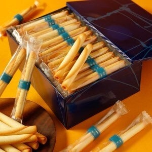 サクっとした食感、繊細なくちどけ、バターの豊かな香り。丁寧に焼き上げたラングドシャー生地をくるっと巻き上げた50年以上愛されるヨックモックのロングセラー商品。