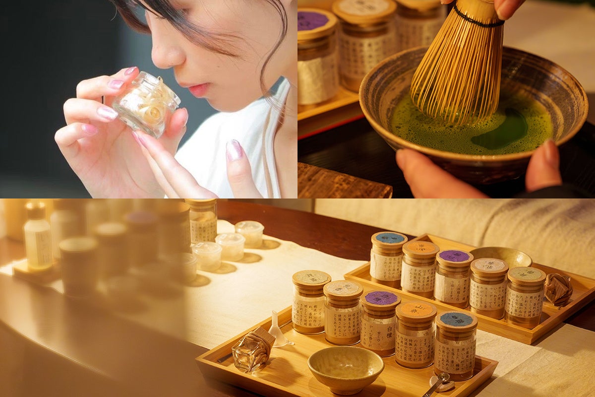お好みの香原料を組み合わせ、自分だけの特別な塗香(ずこう)を作り上げる体験と抹茶点て体験。