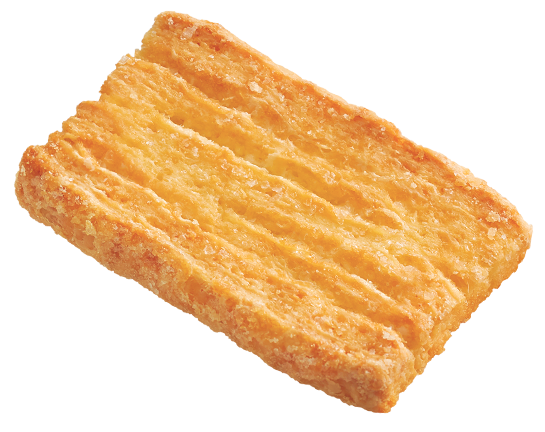 ・定番の「バター」と作品内に登場する「ホットケーキ」のはじっこのサクッとしたところをイメージした期間限定の「ホットケーキ味」の2種アソート