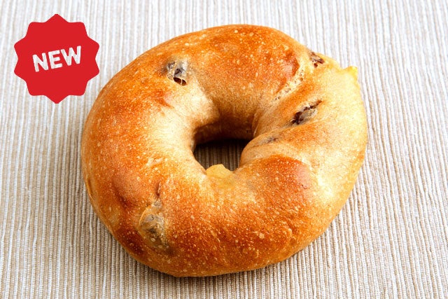 食物繊維入り!香り豊かなシナモン生地のもちもちベーグルに、シロップ漬けした甘いリンゴとレーズンを巻き込みました。