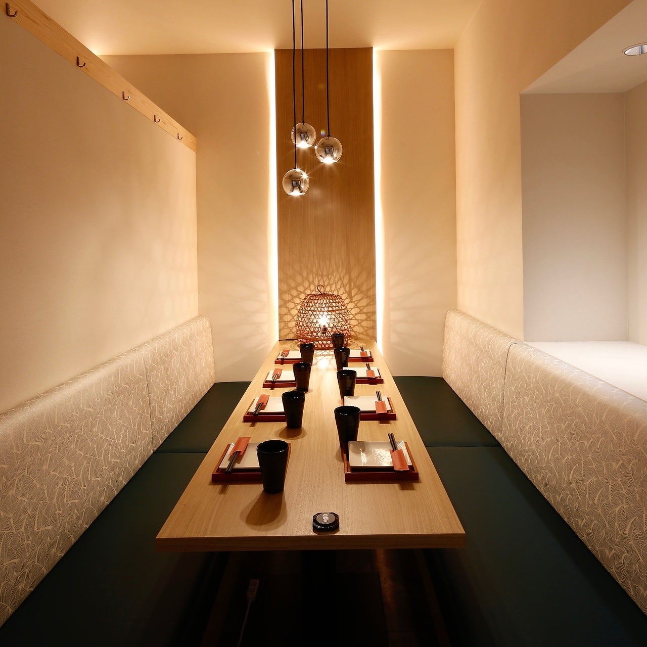 2名様~最大80名様までご利用可能な大中小様々なタイプの個室席をご用意しております。広さに余裕を持たせた設計で、家族での食事、ビジネスでの会食や接待、宴会など、幅広いニーズに応えられるプライベートな空間を備えています。