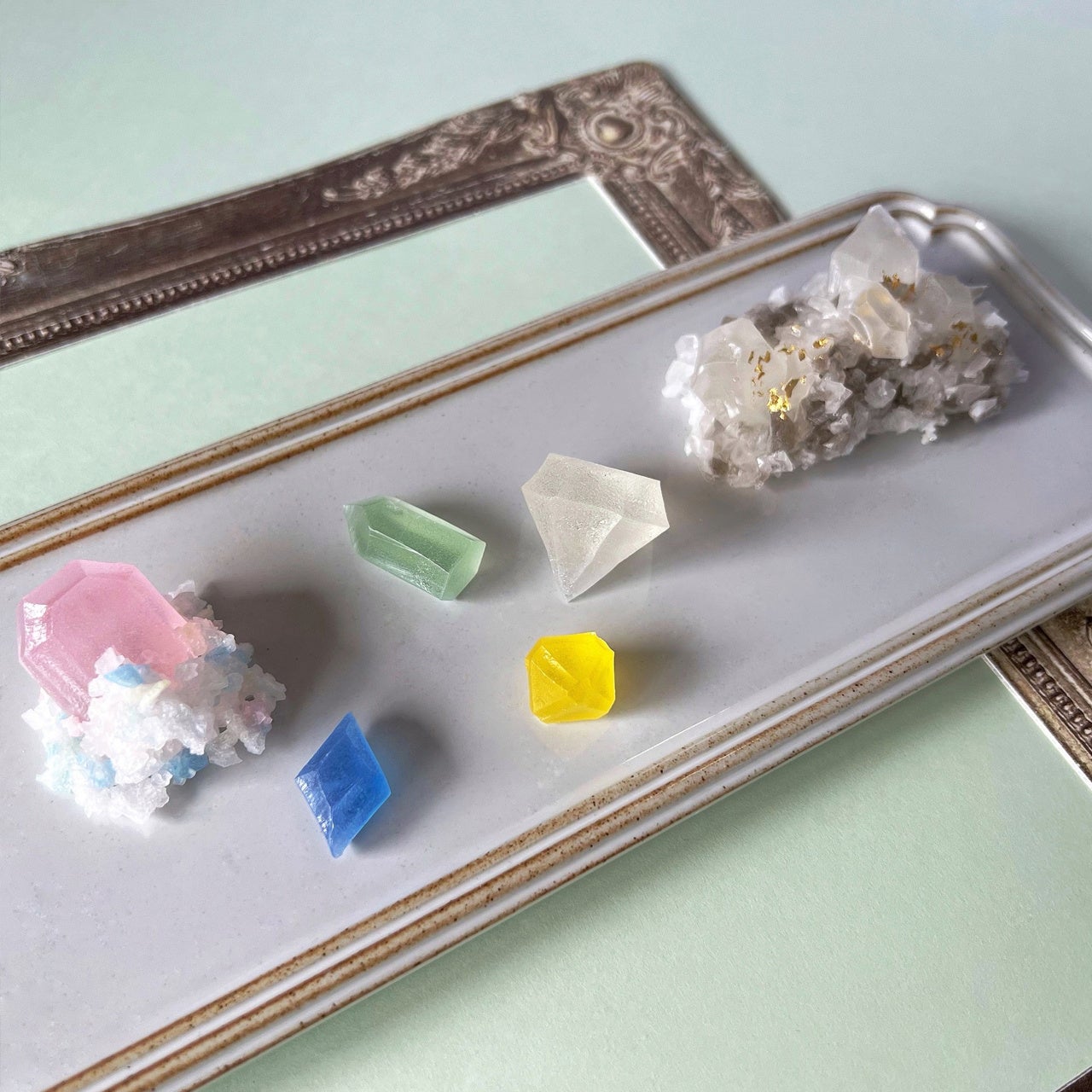毎月一ヵ月限定でお届けする、誕生石のこうぶつヲカシ。4月は「ダイヤモンド」と「モルガナイト」を、手切りの琥珀糖で表現しました。外はシャリっと、中はやわらかくほどける——琥珀糖ならではの繊細な食感もお楽しみいただけます。「永遠の絆・純潔」を象徴するダイヤモンドと、夢や才能の開花を導く“ドリームクリスタル”と呼ばれるハーキマーダイヤモンド。さらに、やさしいピンクのモルガナイトが春らしい彩りを添えます。新しい季節のご挨拶や贈り物に。誕生日や記念日のご褒美にもおすすめです。