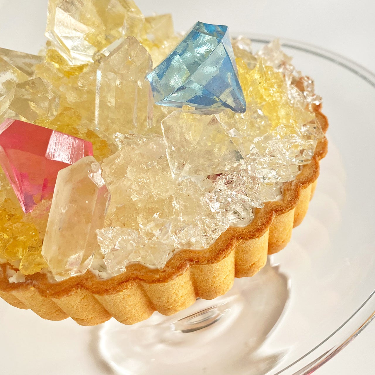 毎月限定数だけお作りする特別なアイスケーキ「誕生石のタルト」に、4月限定バージョンが登場。透明感あふれるダイヤモンドの輝きを、手切りの琥珀糖で繊細に表現しました。イエロー、ピンク、ブルーなど、さまざまなダイヤモンドの煌めきをイメージしたこうぶつヲカシを贅沢にあしらい、まるで本物の宝石のような美しさに仕上げています。ひとつひとつ職人の手で切り出される“切りたての輝き”と、唯一無二の造形が、このタルトだけの特別な魅力です。