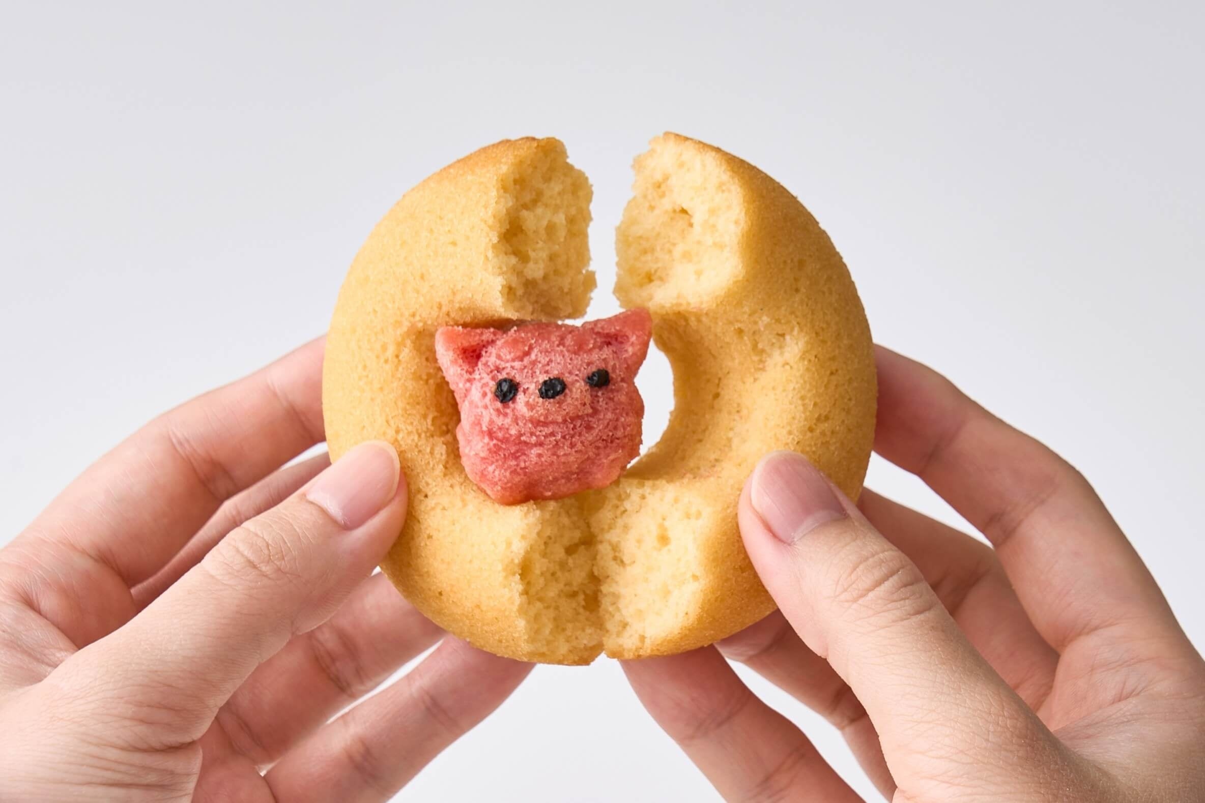 ドーナツ部分は「塩バニラ味」で、真ん中のシーサーが「イチゴ味」。