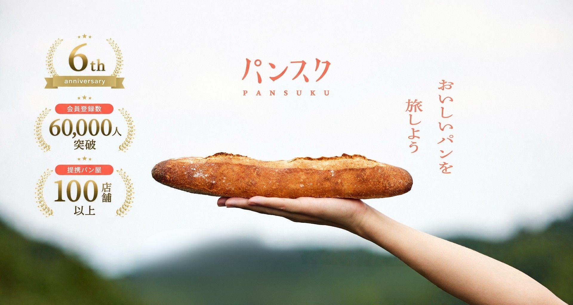 登録会員数60,000人突破、全国100店舗以上の提携ベーカリー。この数字に、6年間の歩みが詰まっています。これらはすべて、全国各地のパン職人たちと、毎月のパンを楽しみにしている会員の皆さんとともに積み上げてきた数字です。