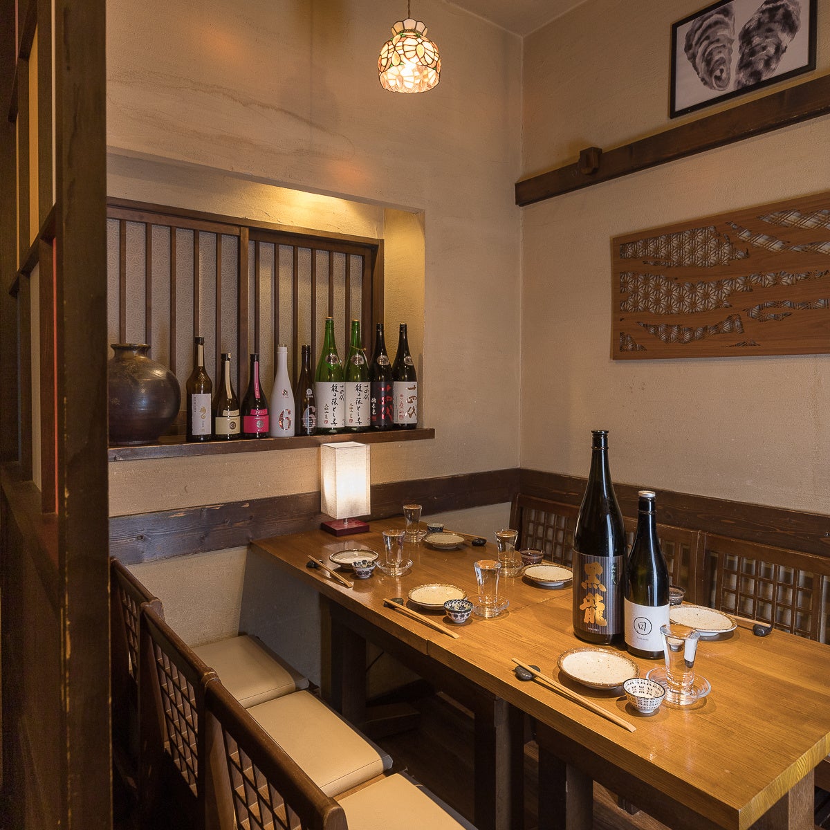 気の知れたお仲間との会におすすめの開放的なテーブル席のほかにも、デートや会食にぴったりな個室もご用意しておりますので、どんなシーンでもお楽しみいただけます。「今日は飲んで帰りたい」という平日も、ショッピング帰りに美味しいものを食べたい週末も、お気軽にご利用ください。最高の牡蠣と、美味しいお酒を用意してお待ちしております。