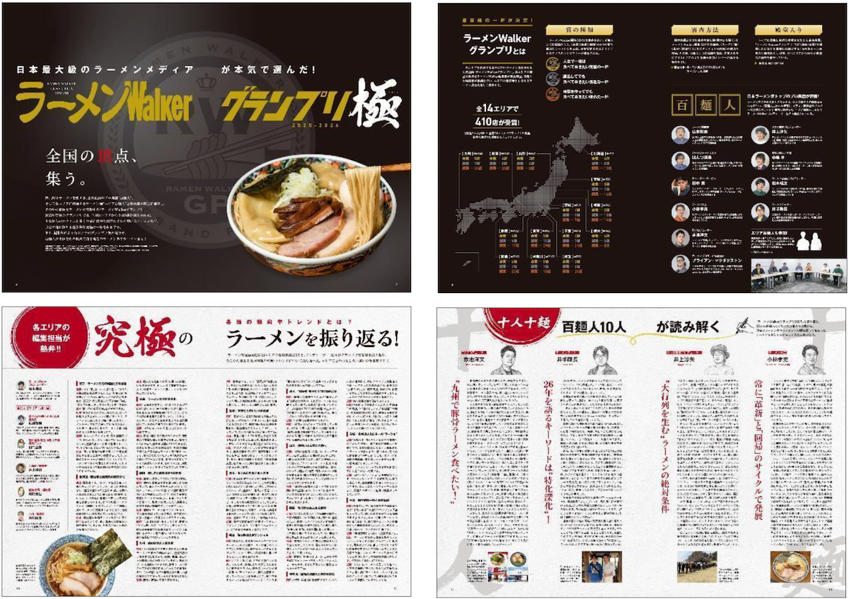 さらに「百麺人」と14エリアの各編集担当による2025年グランプリの振り返り企画や、「ラーメンWalkerキッチン」(埼玉県・所沢市)の5周年記念アンケートの回答者1485人に聞いた、“みんなのラーメン事情”調査企画など、盛りだくさんの内容でお届けします。