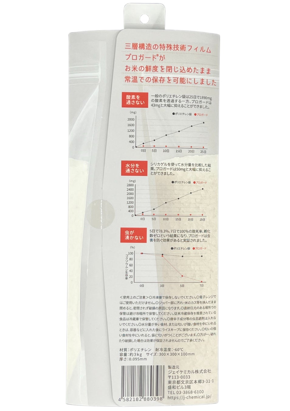 こうした課題に対しジェイケミカルは、「精米タイミングを柔軟にしつつ、常温に近い環境でも品質と衛生を保てる包装」の必要性に着目。本製品の開発に至りました。