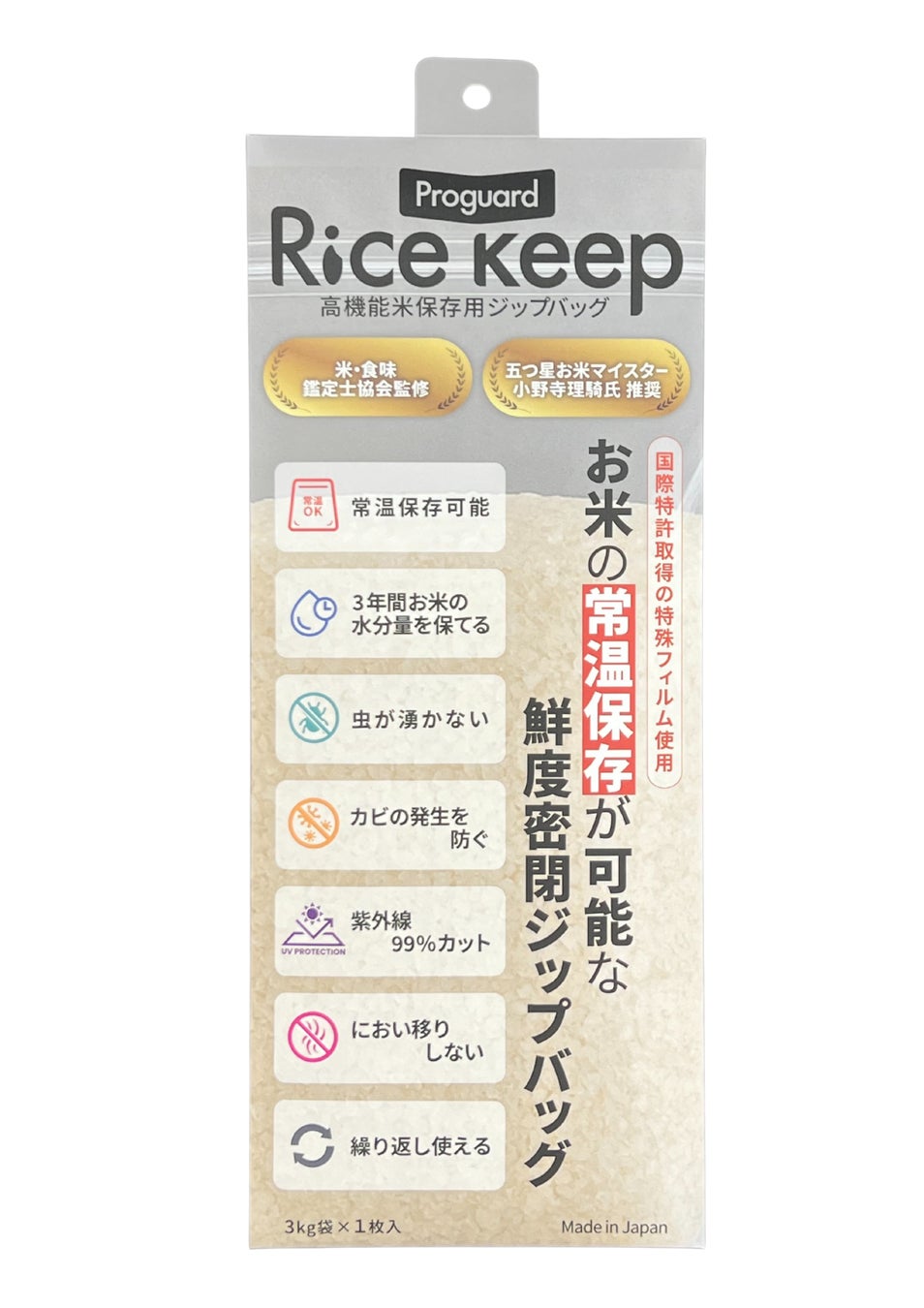 本製品は、一般消費者向けに好評を博している「プロガード・ライスキープ」の技術を基に、業務用途に最適化したBtoB専用モデルです。