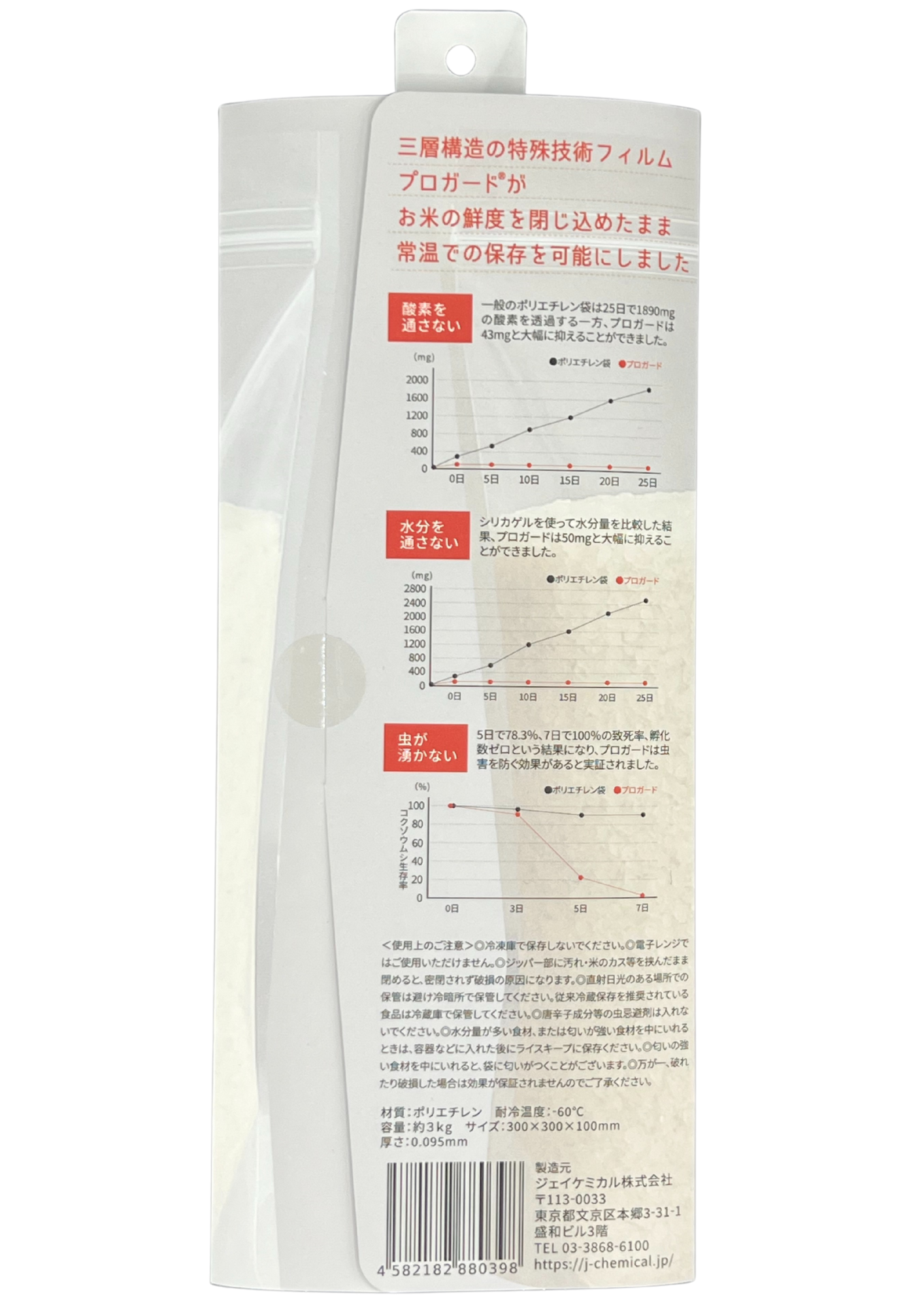 こうした課題に対しジェイケミカルは、「精米タイミングを柔軟にしつつ、常温に近い環境でも品質と衛生を保てる包装」の必要性に着目。本製品の開発に至りました。
